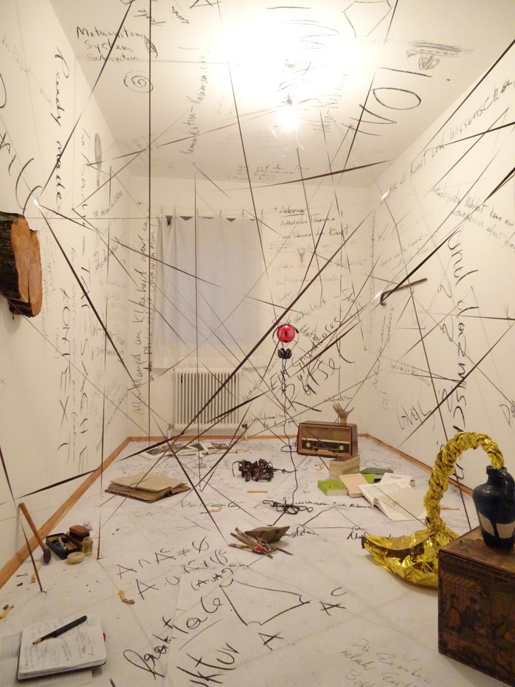 Der Begriff Theorieraum wurde 1979 vom Künstler C. I. Brom geprägt, um räumliche Arangements zu kennzeichnen, in denen ein Beziehungsgeflecht aus Dingen und Begriffen besteht. Die erste als Theorieraum bezeichnete physische Installation, fertigte Brom 1983 an. In den folgenden Jahren richtete Brom mehrere Theorieräume ein. Darunter waren auch einige en miniature mit Glühbirnen ausgestattet in Köpfen angedeuteter menschlicher Figuren.